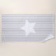 NewparkLane - Modern design Beach Towel, with a grey & white cabana striped pattern, and a big white star. Easy to customise in Zazzle with your own text for a personalised design.