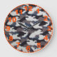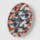 This clock features a grey camouflage theme with large numbers. The numbers, minute markers and border are all done in a day-glo orange. A great gift for the hunter in your life!