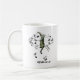 This Mug features a Cat who has gotten herself tangled up in a treble music staff (more about her later).