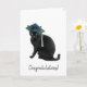 A black cat wears a mortarboard on this graduation congratulations card.