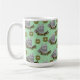 Grey Cat Pattern with Green Ornaments Coffee Mug