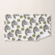 Grey Cat Pattern with Green Ornaments in White Bath Towel Set