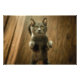 This photo print features a high definition photograph of a gorgeous grey (grey) cat standing on its hind legs to pose for the camera.