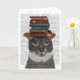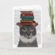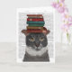 Grey Cat with Books on Head Card
