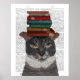 Grey Cat with Books on Head Poster
