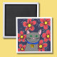 Cute grey cat among flowers. You can customise this image by personalising the initial on the cat tag.