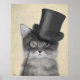 Cat, Grey with Top Hat by FabFunky. Features a dapper cat wearing a fun tophat and a monocle. | 191553D