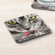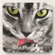Grey Cat with Yellow Eyes Licking Paw Coaster