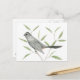 The pretty cool grey bird is perched on a branch with sage green leaves here, coordinating peaceful colours to make it a relaxing piece of bird art for this beautiful nature art postcard - the perfect touch of nature for your special mailings!