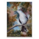 From an original oil painting by Brenda Thour of a grey catbird sitting on a tree branch surrounded foliage and sky in greens, browns, blues, pinks and purples. Inspired by photos taken by a dear friend, Pat Otten. Copyright by Brenda Thour 2005.