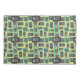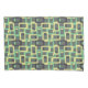 This pillowcase has a mid-century modern design of rounded rectangles with ovals inside in retro shades of dark grey, pale yellow, and seafoam on a field of light grey. If you want the same design with different colours, message me.
