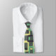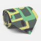 This necktie has a mid-century modern design of rounded rectangles with ovals inside in retro shades of dark grey, pale yellow, and seafoam on a field of light grey. If you want the same design with different colours, message me.