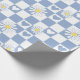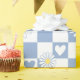 Wrapping paper featuring grey checks with daisies and hearts; perfect for wrapping children’s birthday gifts, baby showers, Valentine’s Day, and gifts for someone special in your life.