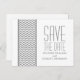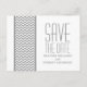 Chic and modern Chevron Border Save the Date Postcard featuring a simple chevron pattern border in grey and white. This stylish design will set the tone for an elegant wedding. Easy to customise, simply add your wedding details in the text fields provided. Click "Customise It" to find more personalisation options.