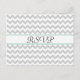 Stylish wedding RSVP response post card done in a light grey and white chevron zigzag pattern, on the front, with a mint green and white band, across the middle and black text reading RSVP. The back is done in a pale grey, with a thin mint green line separating the response card part from the return address part of the post card. Personalise the text to suit your wedding needs. Matching wedding products available.