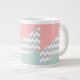 Stylish mint green and coral diagonal corners with a grey chevron centre-