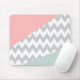 Stylish mint green and coral diagonal corners with a grey chevron centre-