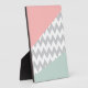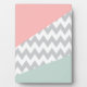 Stylish mint green and coral diagonal corners with a grey chevron centre-