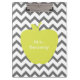 A gift for teachers featuring an illustration of a neon apple over a grey and white chevron background. Personalise with your name on apple.