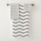 Trendy grey chevron stripe pattern bathroom towel set. Luxury zigzag pattern print design. Elegant home decor for bathroom, toilet, guest house, cabin etc. Custom background colour optional. Includes little washcloth, small hand towel and big bath towel. Stylish present idea for friends, family, couple, newlyweds etc. Zig zag design accessories. Matching print combination for sophisticated interior.