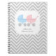 Personalise a notebook for mummy to be at her baby shower! This elegant and classy design which features twin strollers, one in blue and the other in pink, with polka dots pattern are great for mommies who are having twins, a boy and girl! In the background is a grey and white chevron zigzag pattern. Also great for gender reveal parties!