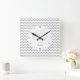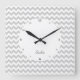 A simple design with alternating grey and white chevrons as they zig zag horizontally across the face of the clock. Personalise with your name or message.