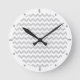 A simple design with alternating grey and white chevrons as they zig zag horizontally across the face of the clock.