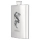 Handsome stainless steel flask, with graphics of a silver and black Chinese style dragon. Personalise the grey text, at the bottom, to suit your needs. Great personalised gift idea.