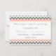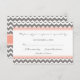 Wedding RSVP cards in elegant and contemporary charcoal dark grey, peach orange pink and white retro and casual chevrons zigzags stripes pattern. Customisable with your wedding details, available in many matching wedding products.