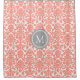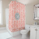 Customisable monogram classic elegant floral damask pattern shower curtain in peach coral pink, dark charcoal grey and white.