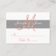 Coral and Grey or Grey Wedding Reception Escort Card personalised with wedding date, bride and groom names and monogram initial. Elke Clarke© Can also be used as place card for the wedding reception. A modern, simple design. Other colours available.