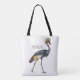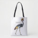 Grey crowned crane bird cartoon illustration tote bag