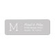 Custom designed return address labels with sleek simple typography on a solid colour background. Personalise it with your monogram initial, name and address or any other custom text. Click Customise It to change text fonts and colours, resize or move text around to create a unique one of a kind label design. Perfect for mailing wedding invitations or any other personalised stationery!