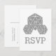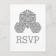 Did meeting your future spouse and everything leading up to your engagement feel like you rolled a twenty? If so, this geeky chic D20 Dice Wedding Response Postcard design is perfect for you! Featuring a bigger twenty-sided D20 die and two smaller dice flanking it, this elegant yet nerdy RSVP postcard in charcoal grey is easy to customise with your wedding details. Click "Customise It" to find more personalisation options.