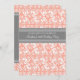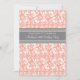 Custom 80th Birthday party invitations in elegant peach coral pink, grey and white classic floral damask vintage pattern. Add your name and party details for a unique and stylish birthday party invitation.