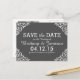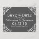 This elegant Save the Date postcard features a charcoal grey coloured background with an intricate damask design running along the border. If you prefer a coloured background, just click the blue 'Customise It' button and select any colour of your choice.
