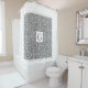 White and grey damask pattern with monogram and white scalloped borders shower curtain. There are white bands with scalloped edges around it while in the centre there is your monogram in a white frame. You can personalise it with your name.