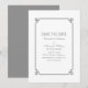 Simple and minimalist Deco Chic Save the Date Announcement with a modern grey art deco ornamental border. This classic and elegant save the date invite is easy to customise with your wedding details. Find more personalisation options by clicking Customise.