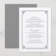 Simple and minimalist Deco Chic Wedding Information Card with a modern grey art deco ornamental border. This classic and elegant info card is easy to customise with your wedding details. Find more personalisation options by clicking Customise.