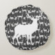 This pretty deer design round pillow is perfect for anyone who loves deer, animals, wildlife,and fun designs! Features several small rustic white deer silhouettes on a background of dark grey with a big white silhouette doe on front, buck on back. This deer pillow is perfect for the living room, den, family room, family cabin on the lake, and of course it makes a great gift.