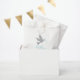 Simple graphic grey dove wedding or couple celebration thank you favour bags. Personalised with your own couples names. Original dove with two blue ribbons graphic art and design by www.mylittleedenweddings.com