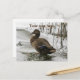 Grey duck on dark the lake holiday postcard