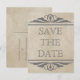 Stylish and chic Elegant Deco Save the Date Postcard featuring a pair of art deco swirl flourish borders in dark grey and a vintage textured look background in a soft beige. This save the date postcard has rustic charm while maintaining a lovely sophisticated flair. Absolutely perfect for an art deco 1920's vintage themed wedding. Easy to customise, simply add your wedding details in the text fields provided. Click "Customise It" to find more personalisation options such as changing fonts or text colours.