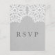 Simple and sophisticated Elegant Lace Wedding Response Postcard featuring a white lace doily motif on a light grey faux vintage paper background. This classic and stylish RSVP postcard is perfect for a rustic wedding. Easy to customise with your wedding details. Click "Customise It" to find more personalisation options.