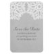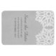 Simple and sophisticated Elegant Lace Save the Date Premium Flexi Magnet featuring a white lace doily motif on a light grey faux vintage paper background. This classic and stylish magnet is perfect for announcing a rustic wedding. Easy to customise with your wedding details. Click "Customise It" to find more personalisation options.