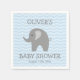 Custom pastel blue and grey cute elephant boys baby shower napkins Personalised babyshower accessories with zoo animals. Neutral design with name and date of birth. Adorable illustration for infant. Change colours for boys or girls. Create your own fun party supplies with customisable text. Add your own colour like; pastel light pink purple yellow blue grey etc. Cute idea for new mum, mother to be. Also funny for kids 1st Birthday party. Stylish typography template with trendy chevron pattern. Disposable throwaway paper napkins with small zig zag stripe print. Customisable zigzag lines.