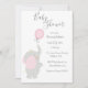 Grey Elephant Balloon Minimalistic Baby Shower Invitation