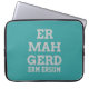 Dorky and fun typography text design Laptop Sleeve featuring a word from the popular meme of Ermahgerd. Ermahgerd is a very obnoxious and lisped way to say "Oh my God!" Customise with your own text and background colour. Use an ermahgerd translator such as this one [http://ermahgerd.jmillerdesign.com/#!/translate] to make your personalised text even more silly!