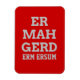 Dorky and fun typography text design premium magnet featuring a word from the popular meme of Ermahgerd. Ermahgerd is a very obnoxious and lisped way to say "Oh my God!" Customise with your own text and background colour. Use an ermahgerd translator such as this one [http://ermahgerd.jmillerdesign.com/#!/translate] to make your personalised text even more silly!
