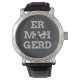 Dorky and fun typography text design watch featuring a word from the popular meme of Ermahgerd. Ermahgerd is a very obnoxious and lisped way to say "Oh my God!" Customise with your own text and background colour. Use an ermahgerd translator such as this one [http://ermahgerd.jmillerdesign.com/#!/translate] to make your personalised text even more silly!